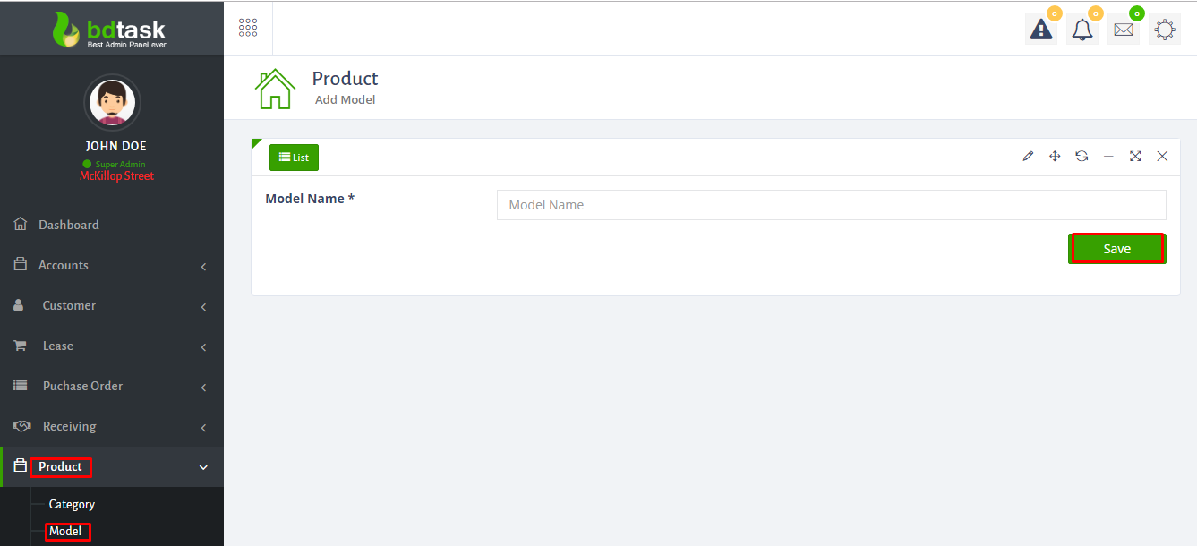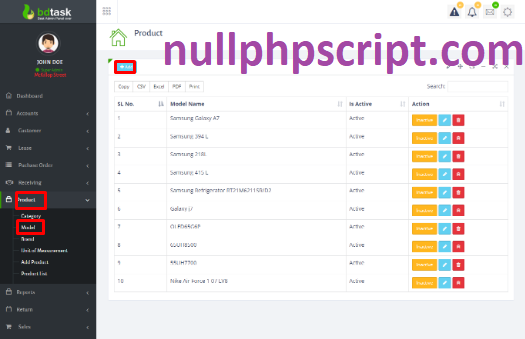 14. Here is the model list.Here you can delete and edit model.For adding model, just click on the add button.