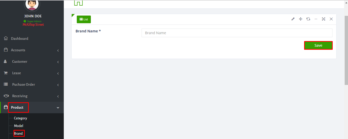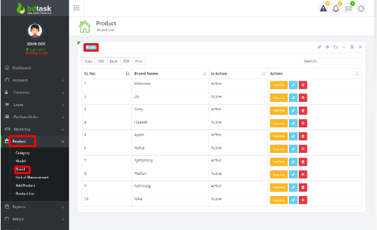 16. Here is the brand list.Here you can delete and edit brand.For adding brand, just click on the add button.