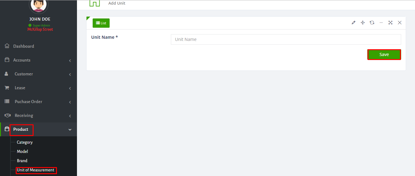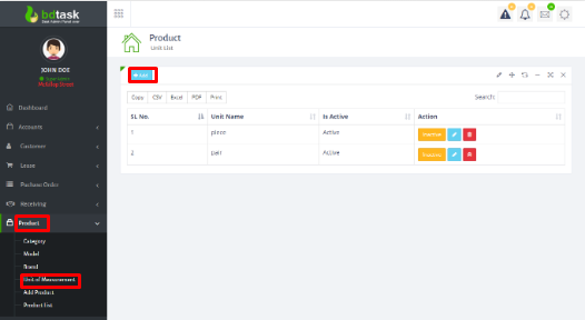 18. Here is the unit list.Here you can delete and edit unit.For adding unit, just click on the add button.
