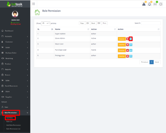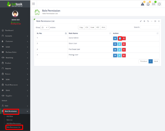 27. Here is role permission list.Here you can delete and edit data.For editing click on the mark button.