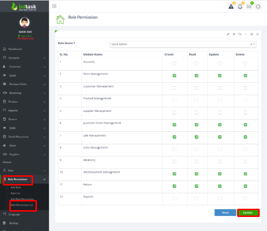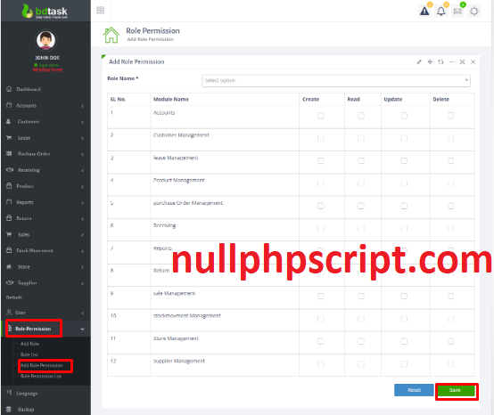 26. For add role permission,go to role permission>add role permission>then fill up the form > click on save button.