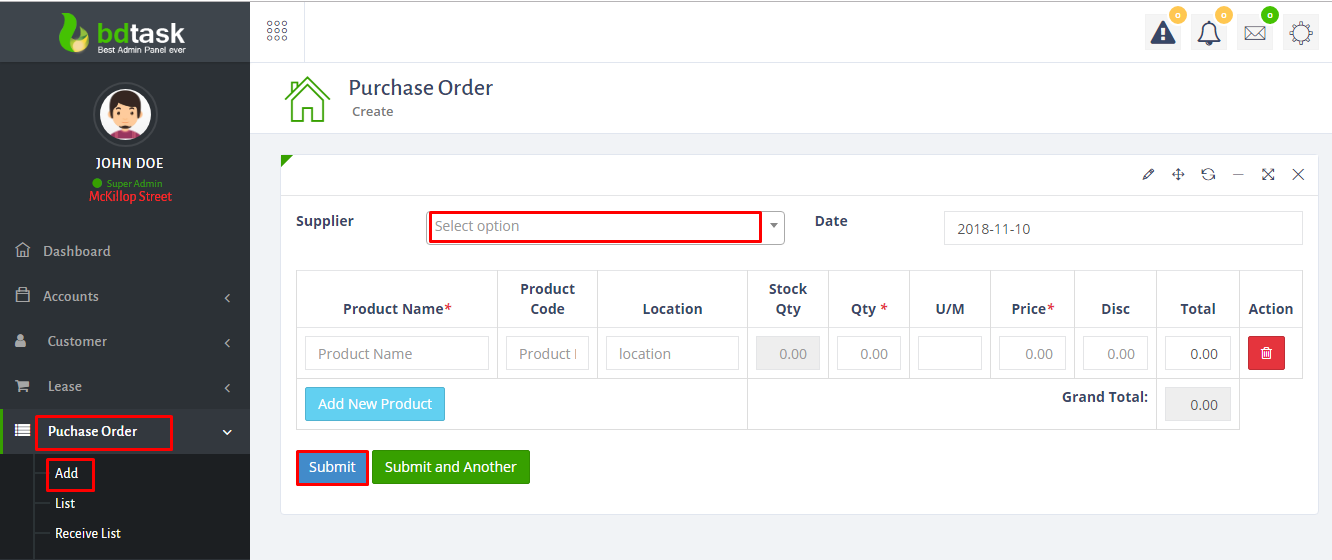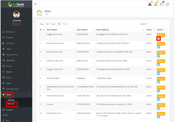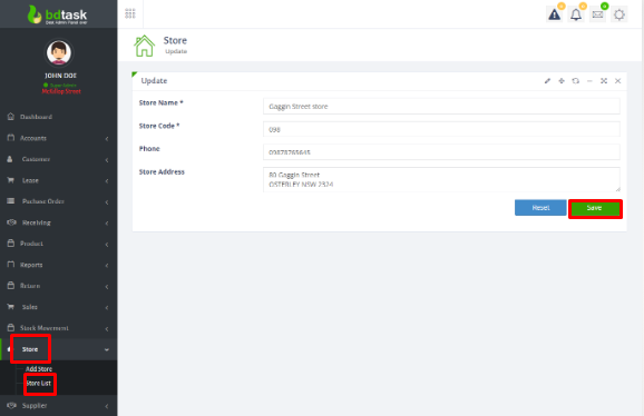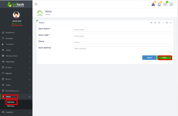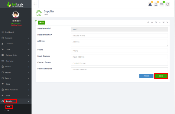 9. After adding store, just go to the Supplier, then you can add the supplier.For adding go to supplier>add >then fill up the form and click the save button .