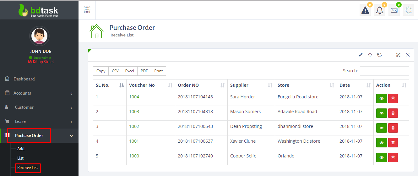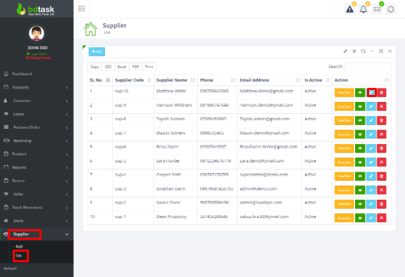 10. Here is the supplier list.Here you can edit and delete supplier.
