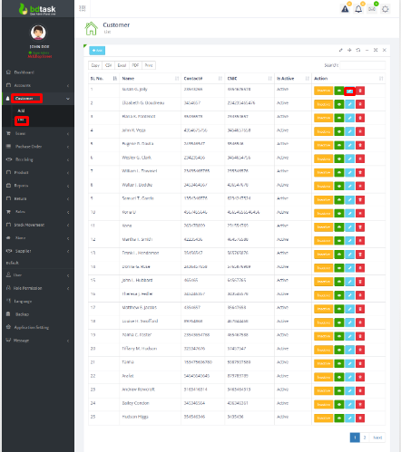 40. Here is the customer list.Here you can also edit,delete and see the view.For editing click on the mark button.