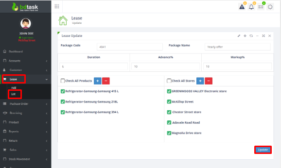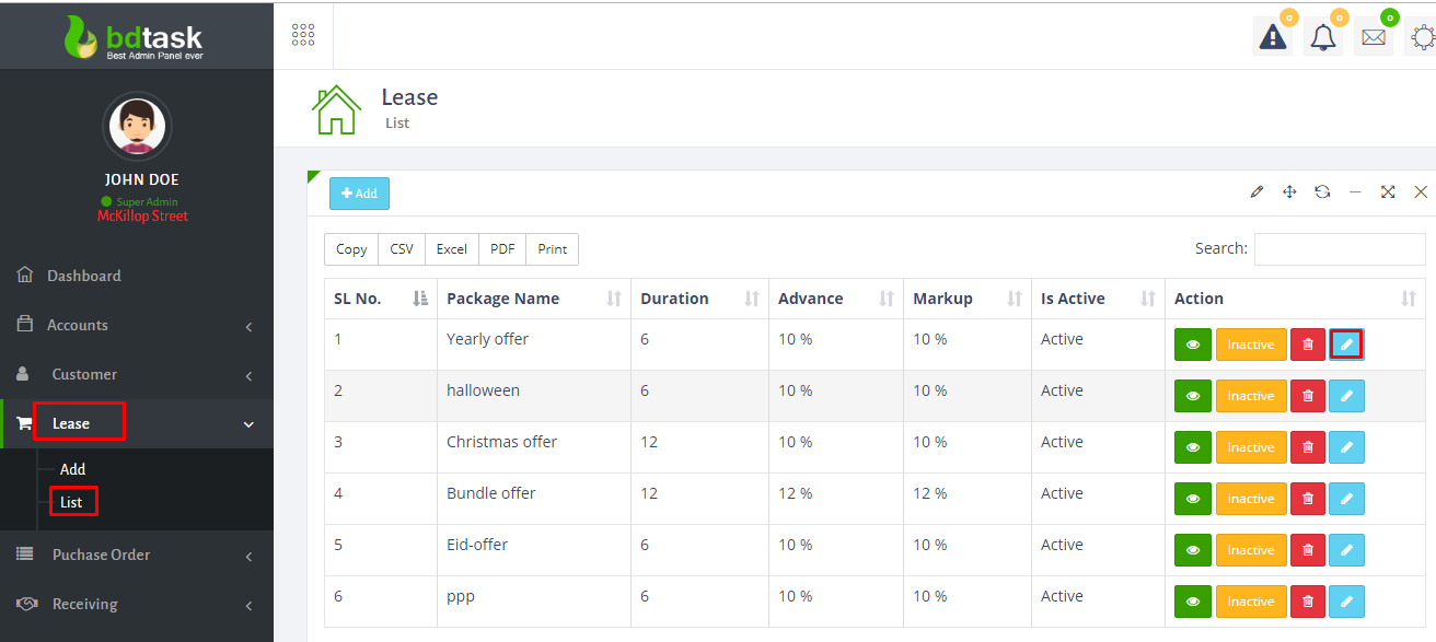 43. Here you can see the lease list.Also you can see the view,edit and delete.For editing click on the mark button.