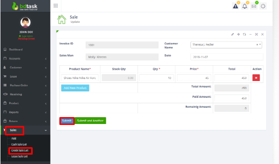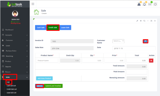 48. For adding credit sale go to sale>add>click on credit sale>then fill up the form>then click on submit.