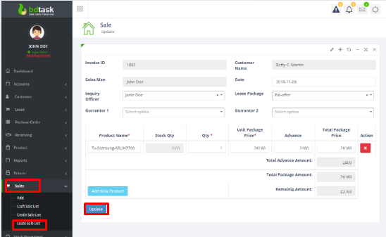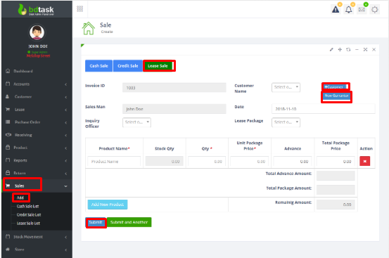 51. For adding lease sale go to sale>add>click on lease sale>then fill up the form>then click on submit.