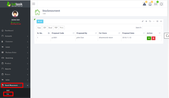 59. Here is the stock movement list.Here you can see the view ,also you can delete.