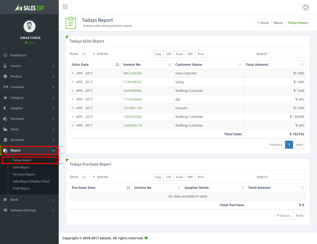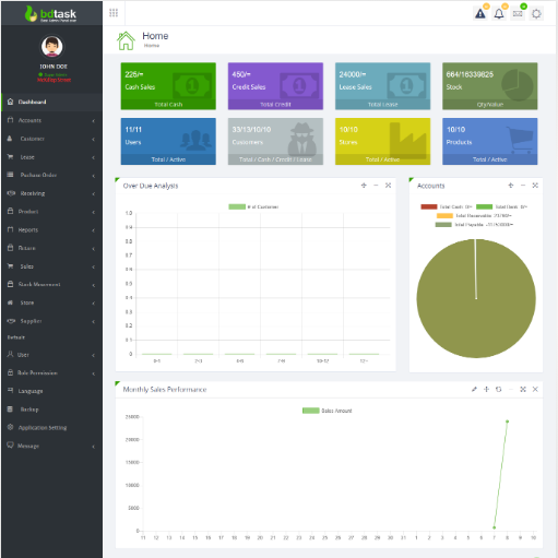 1. This is Home page overview, Your Today's all Sales and Purchase Report will be shown here. You also can see Product wise Sales report in everyday.