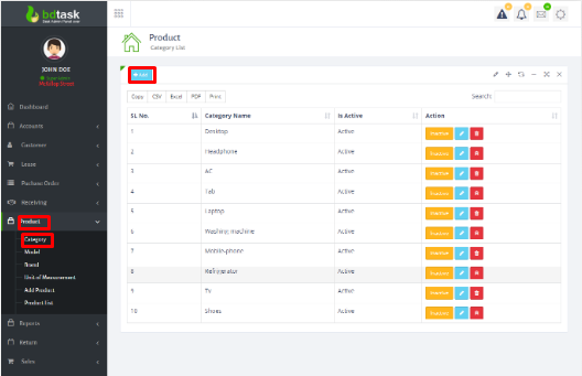 12. Here is the category list.Here you can delete and edit category.For adding category, just click on the add button.