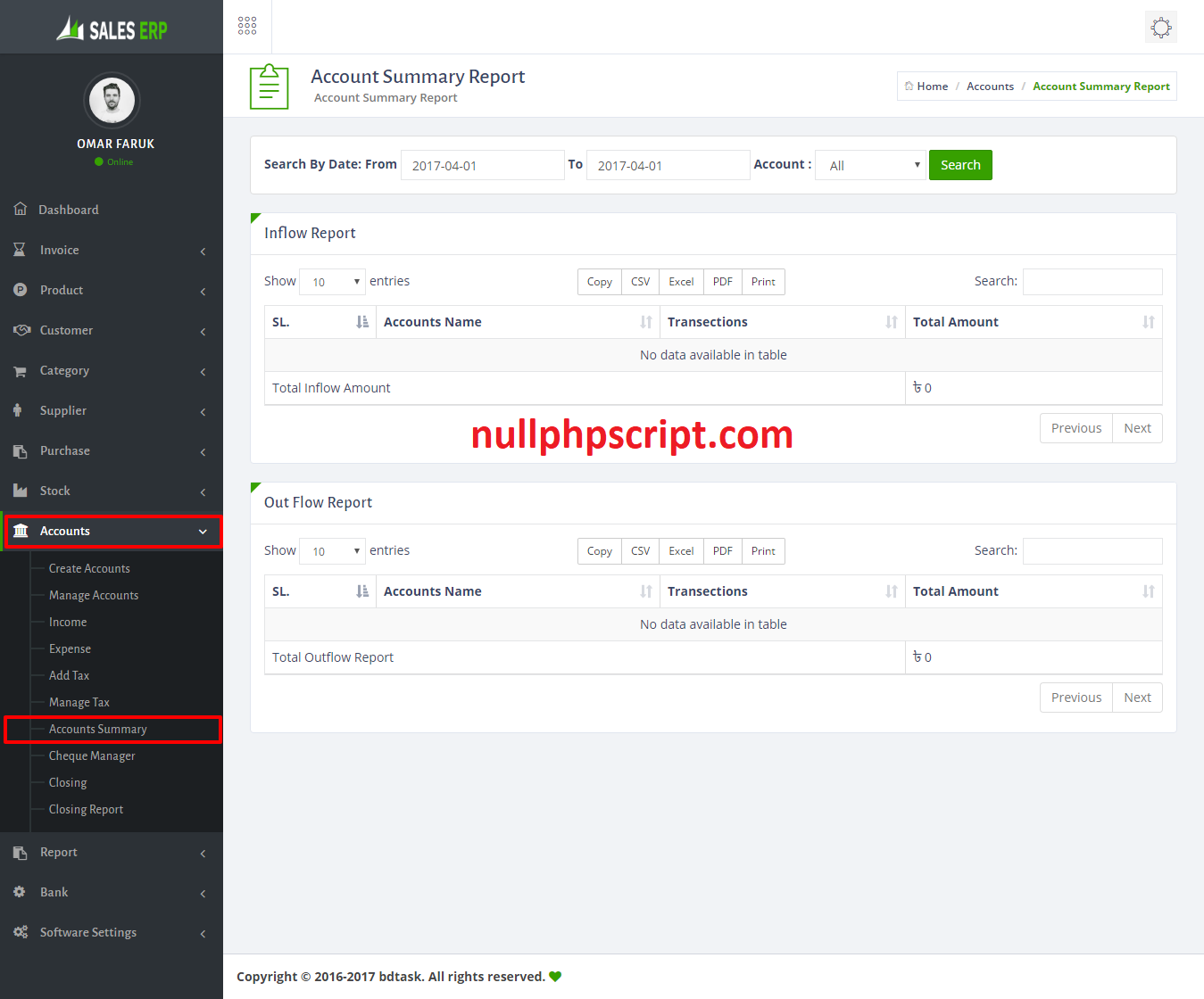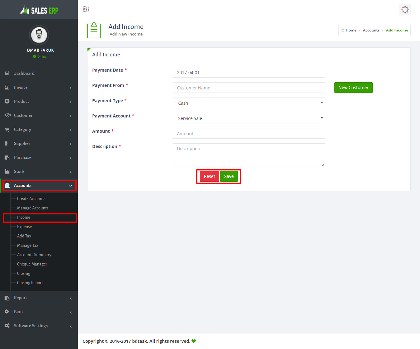 Account setting is the important part of this software. If you ant to add new settings just go to Accounts settings > Here have income and expense,Tax, account summmery, Cheque manager, closing and closing report.