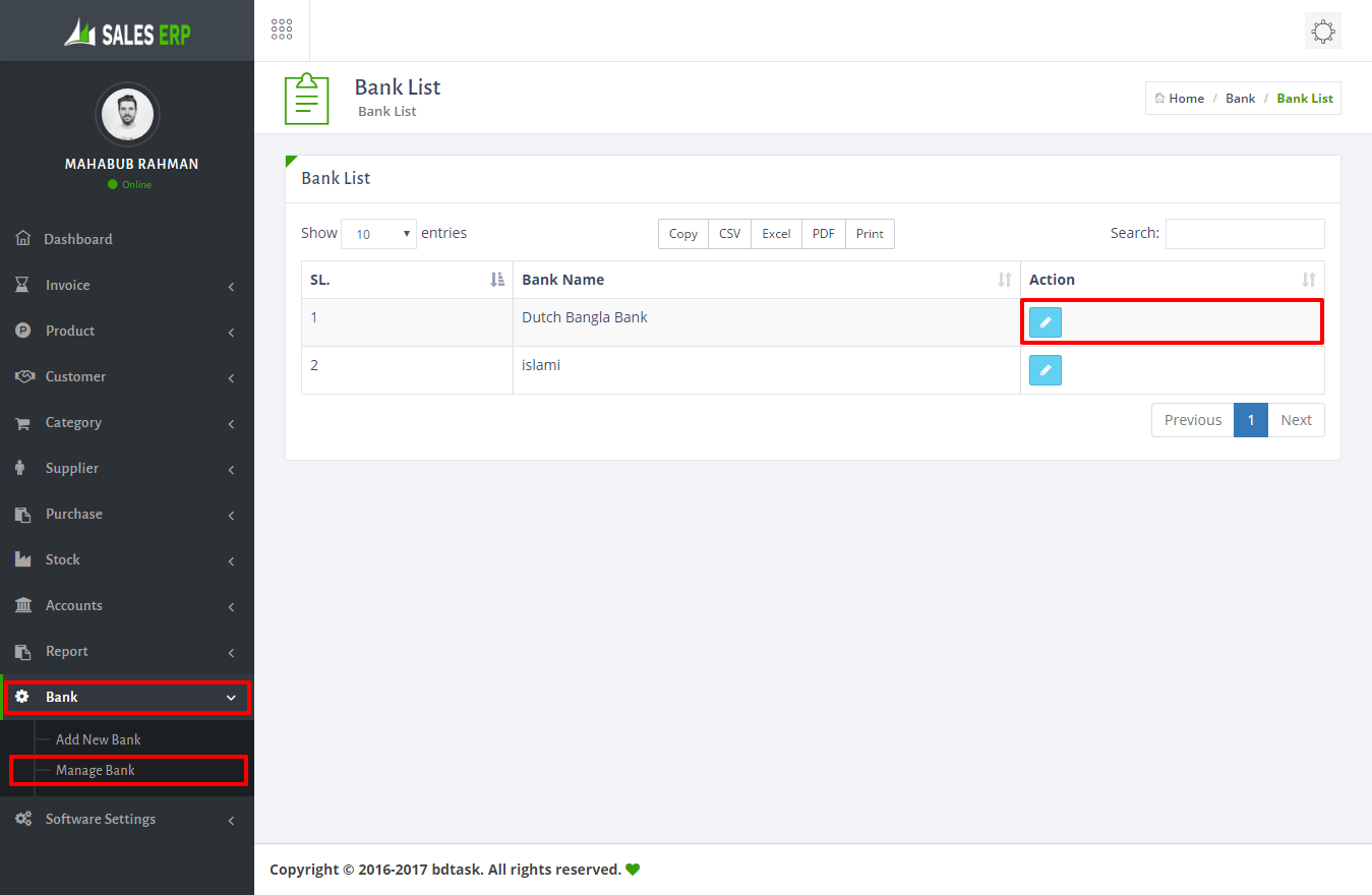 32. Here is the user role list.You can also edit and delete here.For editing click on the mark button.