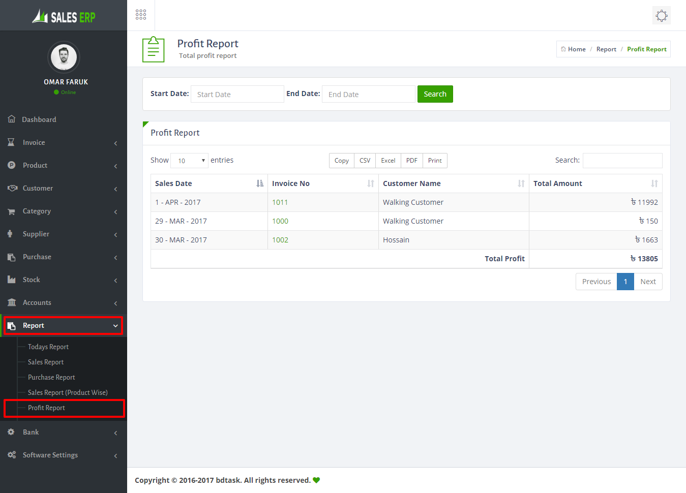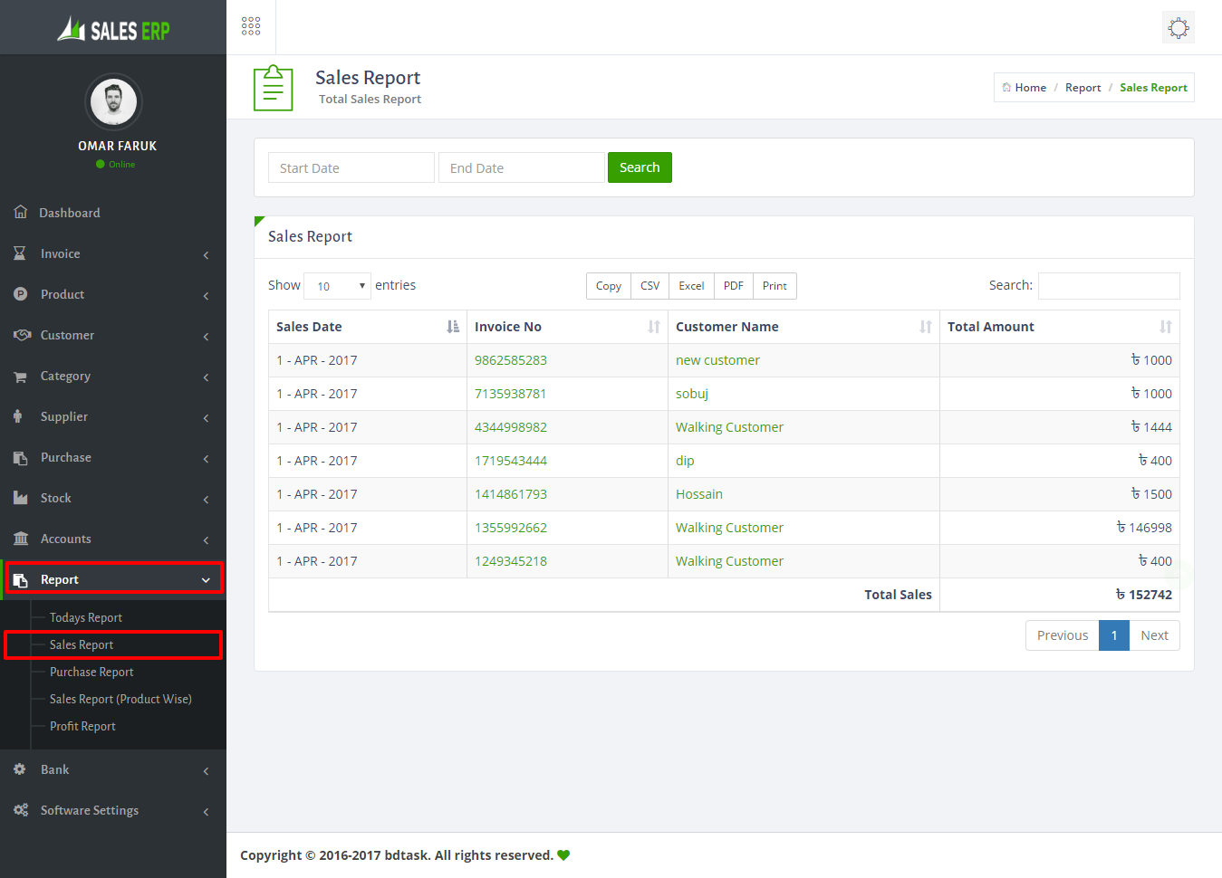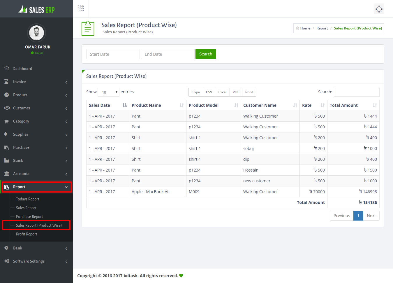 75. To check sales report product wise just go to Report > Sales Report(Product Wise) .