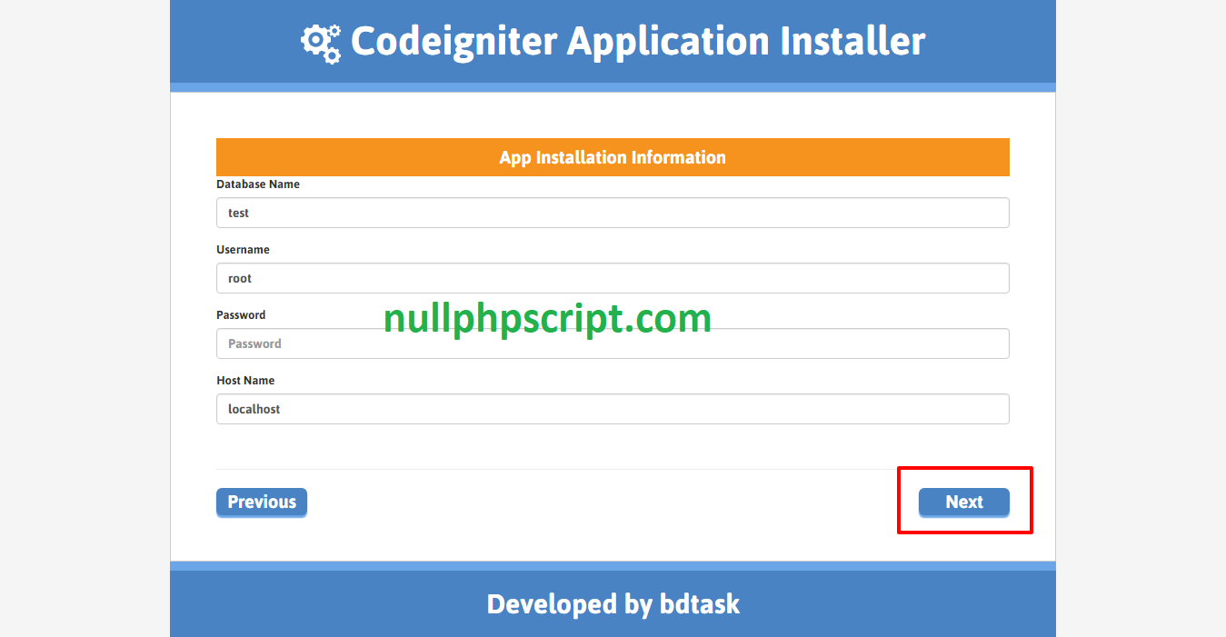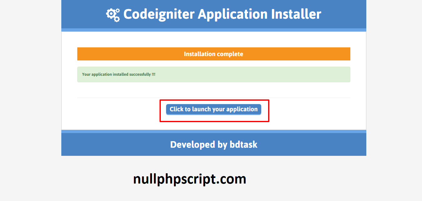 84. Now fill up information put database name > username (eg: root) and make blank password field then click next button and it will take 10 second to install.. then click "Click to launch your application" button and it will redirect to login page.