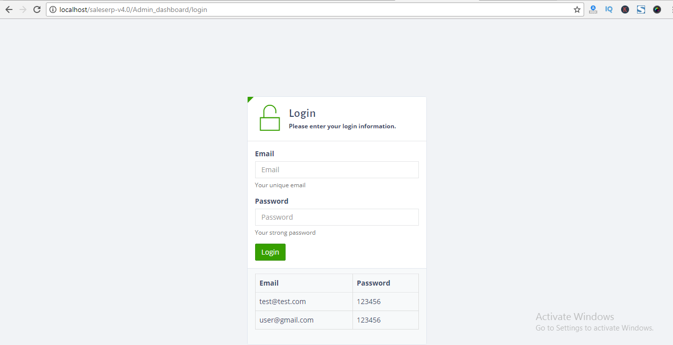• Please Check Your Localhost (xampp/wamp) before installing this Application.It is compatible with this version. > Mysql Version : 5.0.12 > PHP version: 7.0.5 > Apache : 2.4.18